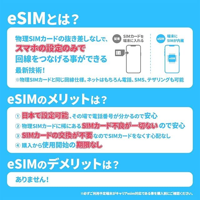 こちらの商品は物理SIMカードを使用しない esim 商品になります。【SIMカードは商品に含まれません。】esim非対応の機種をお持ちのお客様は弊社の物理SIM版T-Mobile商品をお求めください。