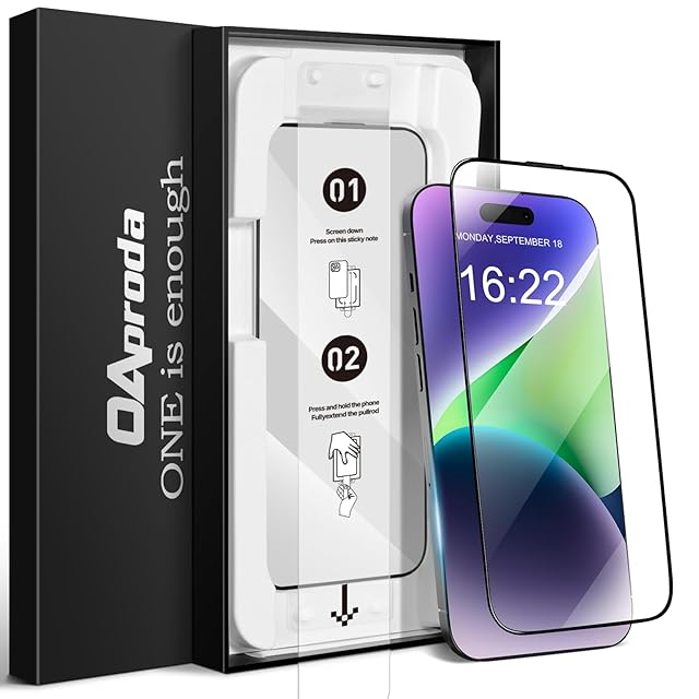 商品名:【 新型ガイド枠 超簡単貼り付け】OAproda ガラスフィルム iPhone14 plus / 13pro max 用 全面保護フィルム 一体式防塵設計 気泡ゼロ 耐衝撃 強化黒縁 硬度が9Hを超え フィルム ガイド枠付き