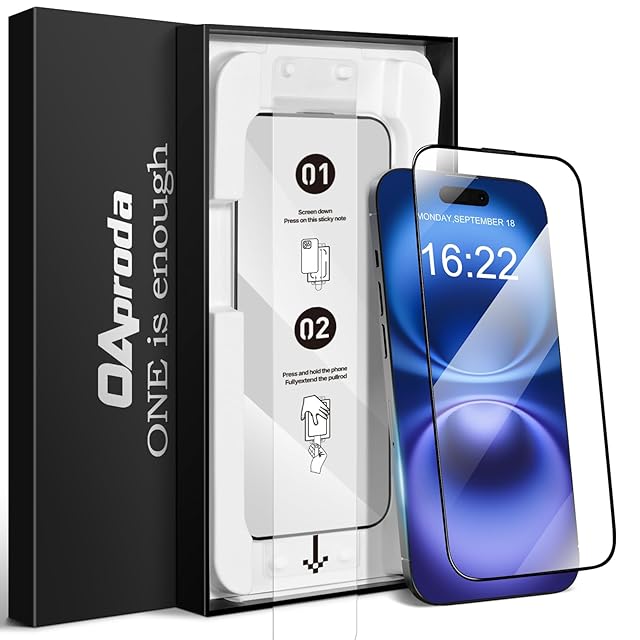 【強化黒縁・1枚が3枚に匹敵】 いphone16 ガラスフィルムは、硬度9Hを超える強化ガラスを採用し、極細黒縁は曲線に沿って全画面をカバーします。強化設計により落下や衝撃によるフチ割れや損傷を全力防ぎます。OAproda製の保護フィルム、1枚で3枚分に匹敵する卓越した耐衝撃性と耐傷性を持ち、スクリーン保護と絶対的な安心感を提供します。