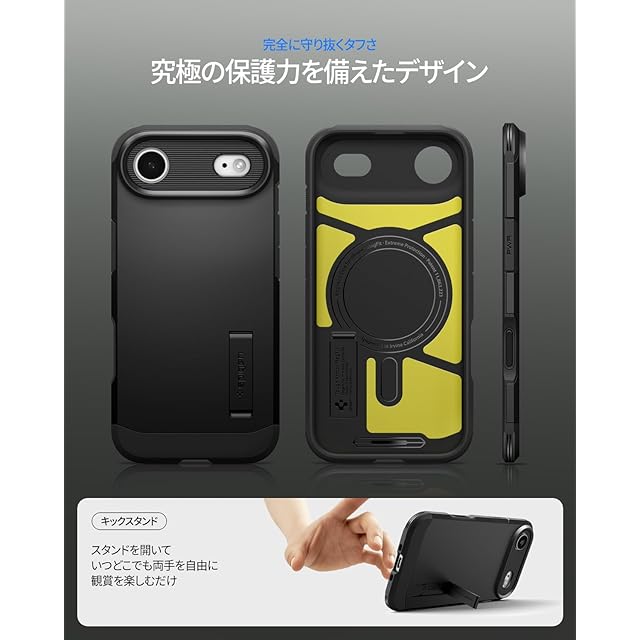 商品名:Spigen 【創業18年の技術力】 iPhone Air ケース MagSafe対応 カメラコントロールボタン対応 スタンド付き マット 耐衝撃 米軍MIL規格 タフ・アーマーT・マグフィット (ブラック) ACS09928