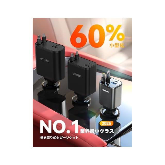 「車内充電の理想形!最新の巻き取り式カーチャージャー」 従来のシガーソケット 充電器の3大問題: ・ ケーブルの絡まり&収納の不便さ ・ 充電速度の遅さ ・ 大型ボディで車内の邪魔になる これらを全て解決する最新モデルの車用充電器が登場! **巻き取り式充電ケーブル(車用専用設計)**でコード管理を完全自動化。PD45W+QC15W高速充電で最新デバイスの大容量バッテリーもスピーディーに充電。超コンパクト設計&180度回転プラグでどんな車内レイアウトにもスッキリ収納。 「速さ」「安全性」「利便性」を兼ね備えた理想のカー用品として、通勤・長距離ドライブ・家族旅行・配送業務など、あらゆるシーンで大活躍!シガーソケット iphone対応の巻き取り式カーチャージャーをお探しなら、ぜひJOYROOMをお試しください!