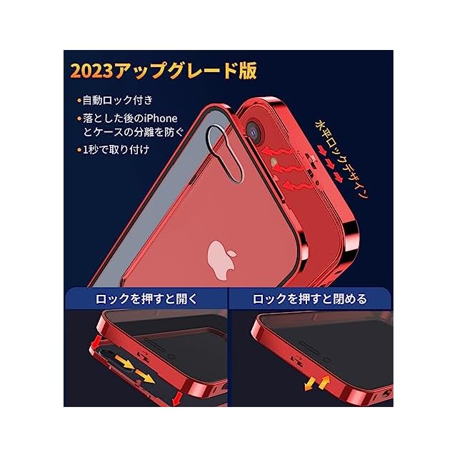 商品名:HGUTREY【覗き見防止・自動ポップアップボタン】 iPhone SE3 用 ケース 第3世代 2022 iPhone SE2 8 7 用 カバー【ロック付き】【ストラップホール付き】 両面9H強化ガラス 耐衝撃 アルミ バンパー メタルフレーム スマホケース 薄型 背面クリア 高感度タッチ 軽量 ワイヤレス充電対応 iPhone 第3世代 SE2 8 7 用 ケース 4.7インチ(レッド)