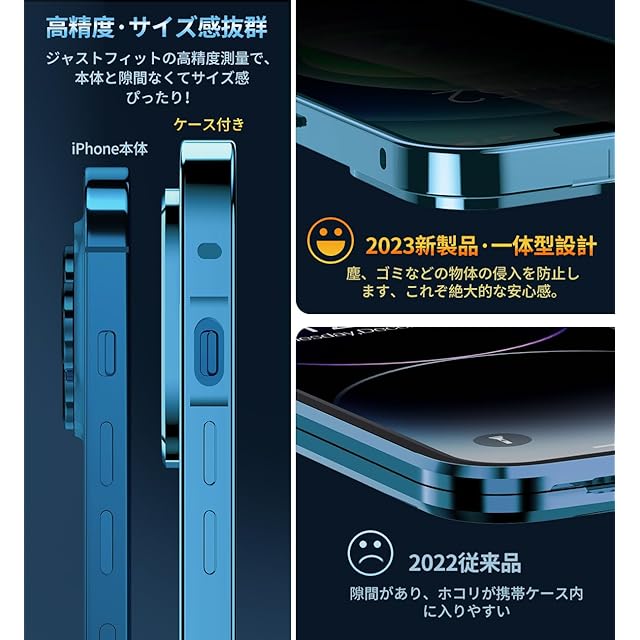 【覗き見防止とプライバシー保護】このあいふぉん12ケースは、覗き見防止技術により、左右の視野からの視線を防ぎ、画面のプライバシーを守ります。このiPhone12ケースは、斜めから見るとブラインドルーバーにより画面が真っ黒になりますが、真正面から見ると高透過率ではっきり見ることが出来ます。画面内容は勿論、個人情報も完璧守られます。満員電車や会議室など、様々な場所で活躍し【プライバシーを守り】ます。公共の場で他人に画面を見られるのが嫌な方はぜひ使ってみて下さい!画面を使用したバーコード決済などは、画面を明るくしてご使用ください。