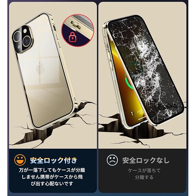 【両面9H強化ガラスとメタルフレーム】このアイフォン13ミニ ケースは前面と背面に硬度9H強化ガラスを採用し、より強い硬度で、硬くて傷がつきにくく、落下するとき傷や破損を有効に防止します。このiphone13ミニ 全面保護ケースの背面は高透過率に経ったガラス素材を用い、フレームは高品質の航空アルミニウム合金製によって設計です。透明な背面はiPhoneのカラーや質感をそのまま映えて高級感が溢れて、フレームのポリッシュ仕上げはよりおしゃれに感じます。両面9H強化ガラスとメタルフレームの完璧な組み合わせ、金属フレームの内側に耐震性クッションが付げられて衝撃力を吸収し、全方位からiPhoneをしっかりと守れます。また、背面がクリアなので、好きなシールや写真を入れてカスタマイズが可能です。そして自分だけのiPhoneがより輝く!