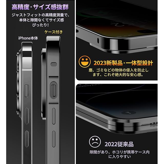 【対応機種】iPhone 14 Pro Max(6.7インチ・3眼カメラ)専用。サイズがびったりなので、他のいかなる機種にも対応しておりません。ご購入前に必ず機種に間違いがないかご確認ください。タッチやボタンにちゃんと機能できるように、上部カバーとリアカバーの組み立てに隙間がでないことをご確認ください。