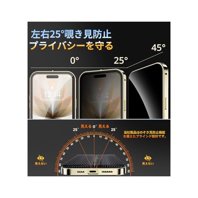 【覗き見防止とプライバシー保護】このあいふぉん17ケースは、覗き見防止技術により、左右の視野からの視線を防ぎ、画面のプライバシーを守ります。このiPhone17ケースは、斜めから見るとブラインドルーバーにより画面が真っ黒になりますが、真正面から見ると高透過率ではっきり見ることが出来ます。画面内容は勿論、個人情報も完璧守られます。満員電車や会議室など、様々な場所で活躍し【プライバシーを守り】ます。公共の場で他人に画面を見られるのが嫌な方はぜひ使ってみて下さい!画面を使用したバーコード決済などは、画面を明るくしてご使用ください。