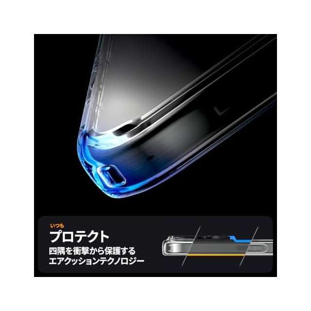 【高耐久のクリア素材】装脱着が簡単になる柔らかいTPU(熱可塑性ポリウレタン)に丈夫なPC(ポリカーボネート)をハイブリッドさせた2重構造でデバイスを守ります。背面のPCにはUVコーティング、側面のTPUには青いレジンを活用した新素材「デュラクリア」を使い、黄変を最小限に抑制しました。