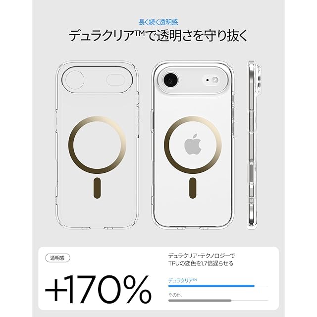 商品名:Spigen 【創業18年の技術力】 iPhone Air ケース MagSafe対応 クリア 透明 ストラップホール 米軍MIL規格 ウルトラ・ハイブリッド・マグフィット (クリア・ゴールド) ACS10053