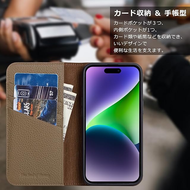 【携帯ケース対応機種】iPhone 13 Pro (6.1インチ、2021年発売)★対応機種と画面サイズをよくご確認のうえ、ご購入いただけますようお願い致します。【100%本革・TPUカバー】TPU素材を使用したソフトカバーにより、軽量と耐衝撃を兼ね備えました。また、柔らかいTPUカバーは取り付け・取り外しが簡単で、スマホ本体への損傷の心配ありません。