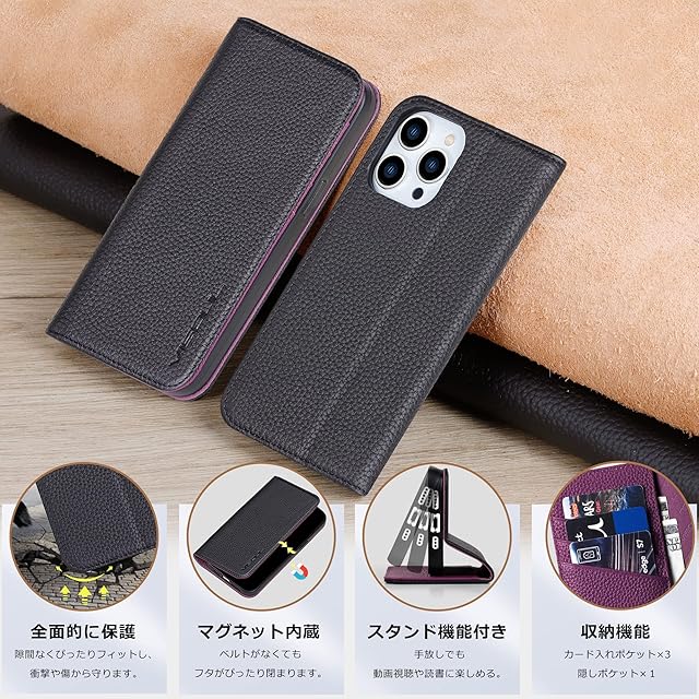 商品名:VISOUL iPhone13 Pro ケース 手帳型 本革 アイフォン13 プロ本革ケース レザー スマホケース iPhone 13 Pro 手帳ケース カード収納 携帯ケース 全面保護 マグネット 横置きスタンド iphone 13Pro 対応 6.1インチ シュリンクレザー iPhone 13 Pro パープル