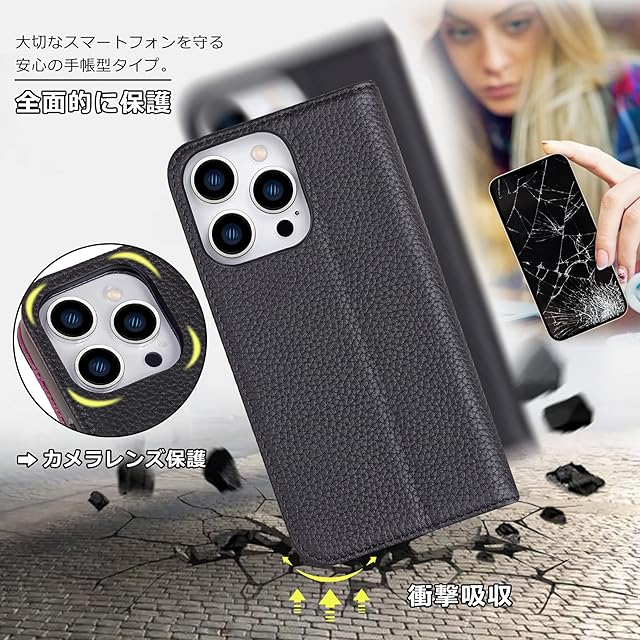 【収納機能、横置きスタンド機能】iPhone13 Proケース内側に実用性のカード入れポケット×4、内側ポケット×1、カード類、現金、名刺、免許証入れなどを収納でき、通勤も通学にも楽々タイプです。マグネットが内蔵されているので、ベルトがなくてもフタがぴったり閉まります。横置きスタンド機能が付きまして、好きな角度を調節できて、手放しでも動画視聴や読書に楽しめる。