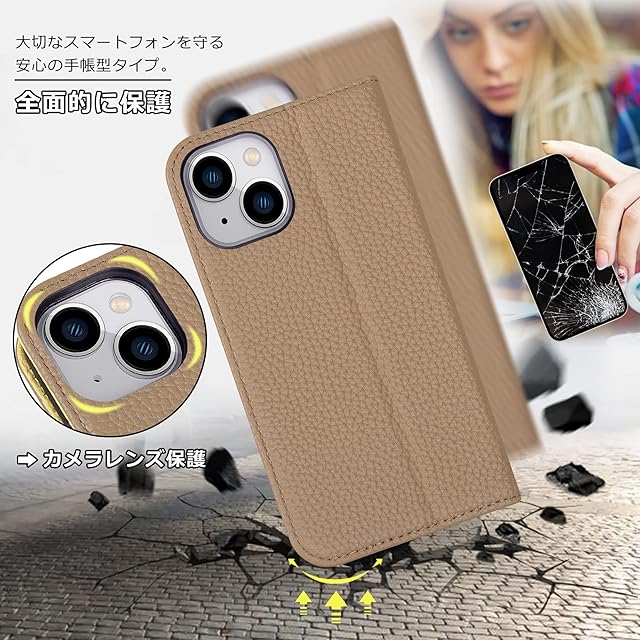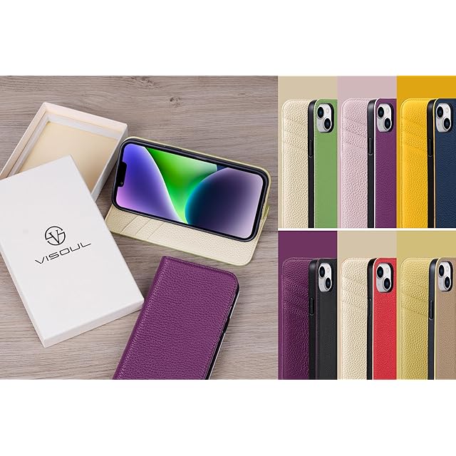 VISOUL iPhone13 Pro ケース 手帳型 本革 アイフォン13 プロ本革ケース レザー スマホケース iPhone 13 Pro 手帳ケース カード収納 携帯ケース 全面保護 マグネット 横置きスタンド 6.1インチ シュリンクレザー iPhone13Pro ベージュレモン