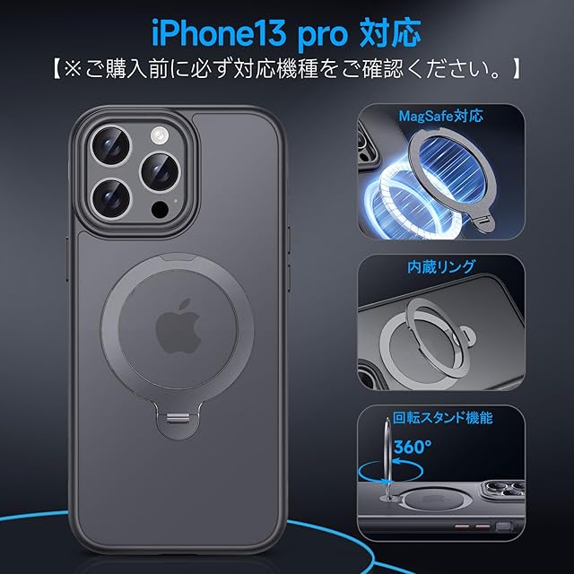 【2025斬新アップグレード&対応機種】:iPhone 13pro ケース 用 6.1インチ[マグセーフ対応]。 360度回転リングスタンド・カメラレンズ保護・スクリーン保護・折りたたみ手持ちリングなど機能が付きの一体型なアイフォン13pro ケース 。