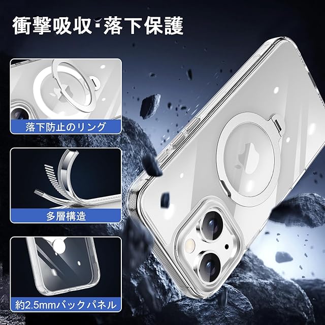 【2025斬新アップグレード&対応機種】:iPhone 13 用 ケース iPhone 14 用 ケース。6.1インチ[マグセーフ対応]。 360度回転リングスタンド・カメラレンズ保護・スクリーン保護・折りたたみ手持ちリングなど機能が付きの一体型なアイフォン13 ケース/アイフォン14 ケース 対応 クリアケース 。
