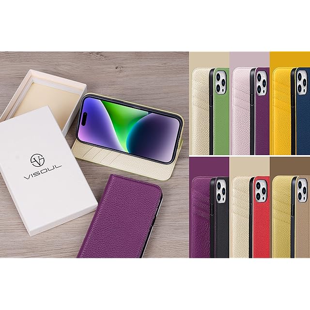 商品名:VISOUL iPhone13 Pro Maxケース 手帳型 本革 アイフォン13 プロマックスケース レザー スマホケース カード収納 携帯ケース 全面保護 マグネット式 横置きスタンド 対応 6.7インチ シュリンクレザー アイホン13ProMax ベージュレモン