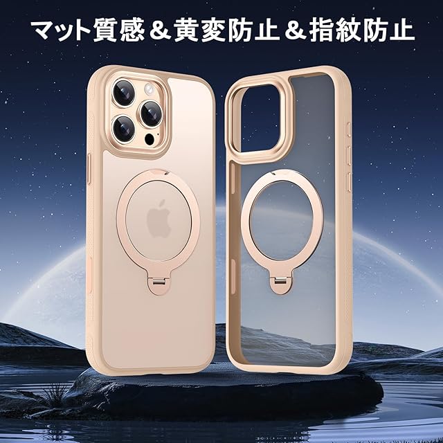 iPhone用 ケース MagSafe対応 ワイヤレス充電 磁気リング マグネット搭載 定点360度回転スタンド付き 耐衝撃 耐久性 保護ケース 黄ばみ防止 滑り止め 落下保護 傷防止 携帯ケース いphone対応カバー ストラップホール付き 指紋防止