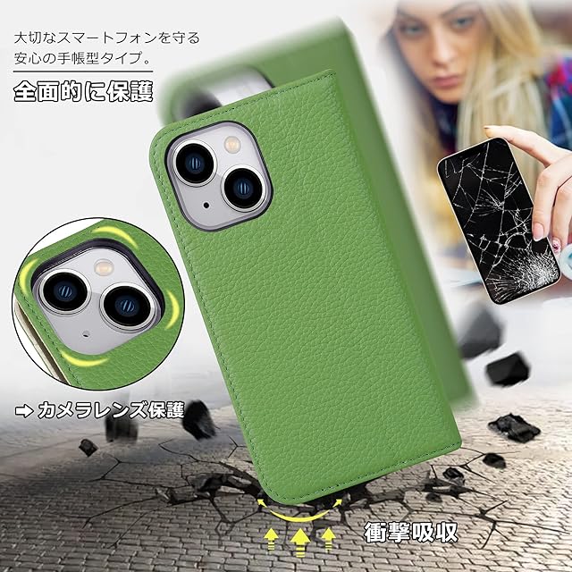 商品名:VISOUL iphone13 ケース 手帳型 本革 レザーケース マグネット式 スタンド機能付き手帳型ケース カード収納 携帯ケース 全面保護 マグネット 柔軟なTPU素材 スマホケース iphone 13 対応 6.1インチ アイフォン13 シュリンクレザー iPhone13 グリーン ホワイト