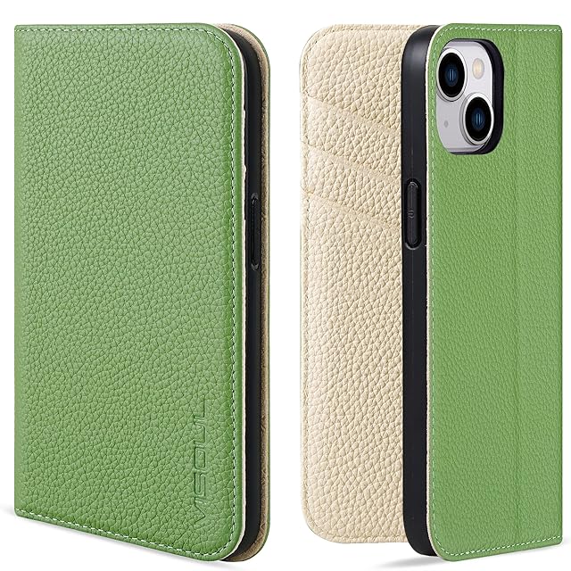 商品名:VISOUL iPhone 13 mini ケース 手帳型 本革 レザー アイフォン13mini 手帳型ケース カード収納 携帯ケース 全面保護 柔軟なTPU素材 マグネット式 スタンド機能付き スマホケース 5.4インチ対応 アイホン13 mini グリーン ホワイト