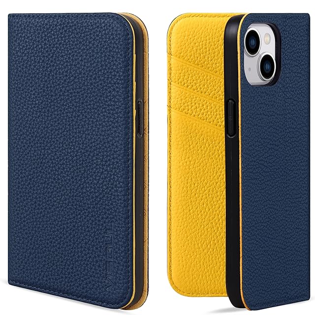 VISOUL iphone14 ケース 手帳型 本革 レザー スマホケース アイフォン14手帳型 カード収納 携帯ケース 全面保護 柔軟なTPU素材 マグネット式 スタンド機能付き アイホン14 対応 6.1インチ iphone 14 ネイビー レモン
