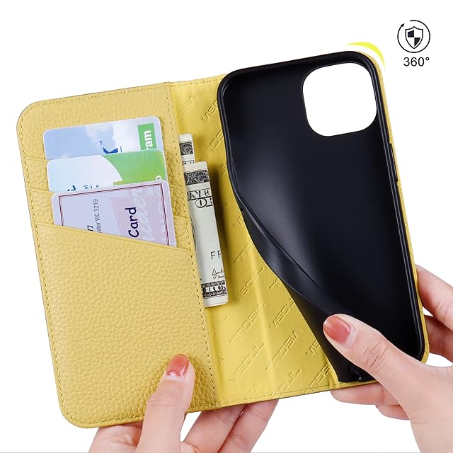 VISOUL iPhone 14 ケース 手帳型 本革 アイフォン14 手帳型 レザー スマホケース カード収納 携帯カバー 全面保護 マグネット 横置きスタンド機能付き 柔軟なTPU素材 落下防止 iPhone 14ケース 対応 6.1インチ アイホン14 ベージュレモン