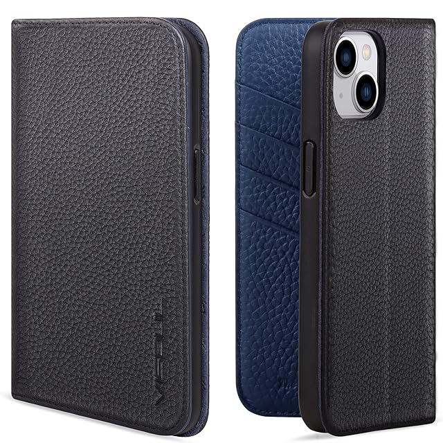 VISOUL iPhone 14 Plus ケース 手帳型 本革 レザー 衝撃吸収TPU素材 全面保護 マグネット式 カード収納 多機能 アイフォン14 Plus ケース 横置きスタンド機能付き手帳型ケース 2022年発売 アイホン14 Plus 対応 6.7インチ iphone 14 Plus ネイビー