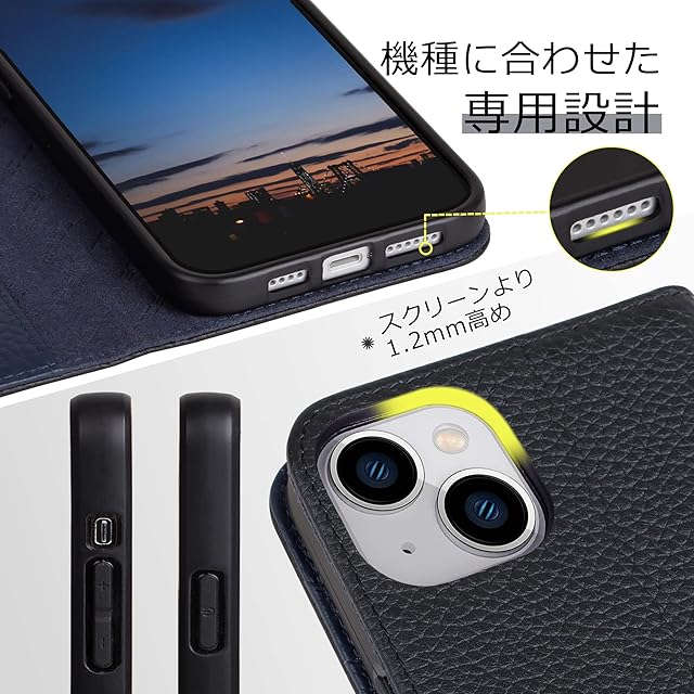 商品名:VISOUL iPhone 14 Plus ケース 手帳型 本革 レザー 衝撃吸収TPU素材 全面保護 マグネット式 カード収納 多機能 アイフォン14 Plus ケース 横置きスタンド機能付き手帳型ケース 2022年発売 アイホン14 Plus 対応 6.7インチ iphone 14 Plus ネイビー