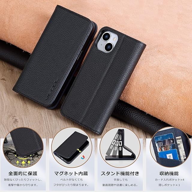 <br>本革使用、手作り<br> <br> 職人の丹精をこもった製品ので、外側には手触りの良い高品質な本革レザー、<br><br>いい製品を出すために、必ず高級の牛革を使用します。<br><br>本革の手触りはすごくいいで、柔らかく、何とか落ち着きな感じがします。<br> <br>本革レザーケースをもっとキレイになるため保養が必要です。<br> <br>保養に関して:<br> <br>乾燥で、通気性良いところに置いてください。<br> <br>綿布で清潔してください。少しお水を使っても大丈夫です。<br> <br>長時間の強い日差しを避けてください。<br> <br> 【シュリンクレザー、天然牛革、独特なシボ】<br> <br> 天然皮革は長く使い続けることで色合いや手触りが変化し、深い味わいが生まれます。<br> <br> 革を収縮加工することによって、革表面にシワが生まれます。<br> <br> このシワのことを「シボ」と呼び、シボの形・大きさ・風合いに個性が表れてきます。<br> <br> 【シュリンクレザーに共通した特徴が】<br> <br> 革表面のシボ柄(シワ模様)<br> <br> 軽量&強度が高い(丈夫)<br> <br> 革表面がキズ付きにくい<br> <br>TPU素材を使用したソフトカバーにより、軽量と耐衝撃を兼ね備えました。<br> <br>また、柔らかいTPUカバーは取り付け・取り外しが簡単で、<br> <br>スマホ本体への損傷の心配ありません。<br> <br>【収納機能】<br> <br>カードポケット×3<br> <br>内側ポケット×1<br> <br>カード類、現金、名刺、免許証入れなどを収納可能。<br> <br>【ギフト包装】<br> <br>本革レザーケースX1<br> <br>プレゼント用箱X1<br> <br>【VISOUL永久】<br>