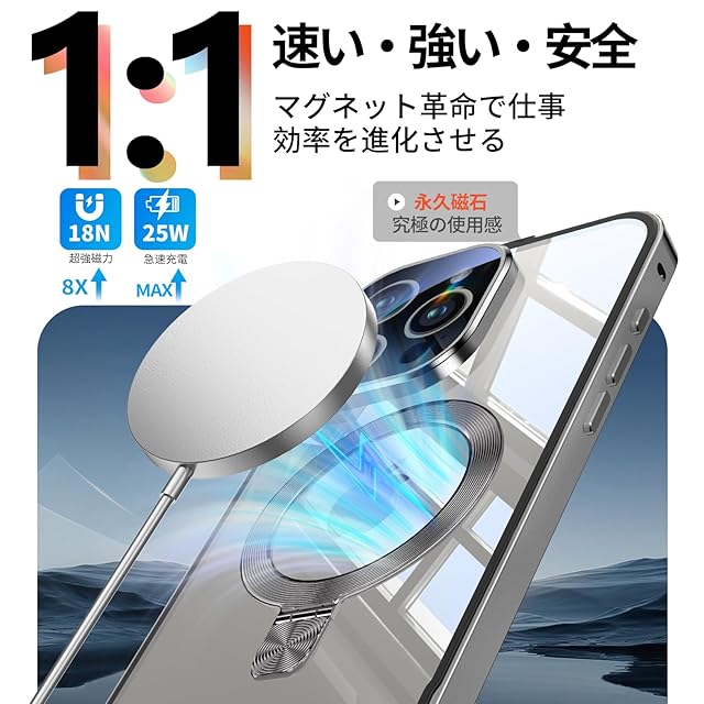 【3in1超進化スタンド・驚異の実用性!】当店のiphone15promax 携帯ケースは、スタンド・リング・ワイヤレス充電対応の3機能を一つに集約。30000回以上の開閉テストをクリアした耐久性に加え、指紋やキズにも強い高耐久設計を実現しています。通勤中の語学学習、リモートワークでのビデオ会議、キッチンでのレシピ確認、アウトドアでの自撮りなど、あらゆるシーンで驚くべき実用性を発揮します。リングモードでは、指を引っ掛けるだけで安定保持が可能。満員電車の中でも落下の心配がなく、安心してお使いいただけます。さらに、このアイホン15 promax ケースは、業界最強クラスのN56マグネットを採用(従来比20倍の吸着力)。マグセーフ対応の車載ホルダーに装着すれば、悪路でもしっかり固定され、快適なドライブをお楽しみください
