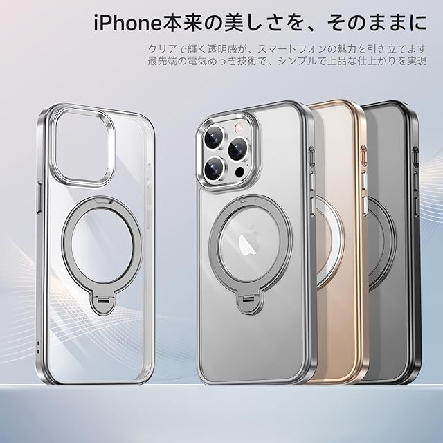 商品名:【透き通る上質感・多機能360°回転スタンド】KMAMBNG iPhone 13 ProMax 用 ケース Magsafe対応【耐衝撃・金属感・真空メッキ・黄変防止・ストラップホール付き】縦横両立 角度自在 調整可能 磁吸機能でワイヤレス充電対応 おしゃれ スマホケース (グレー, iPhone 13 Pro Max)