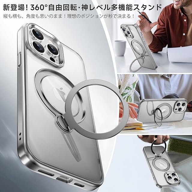 商品名:【透き通る上質感・多機能360°回転スタンド】KMAMBNG iPhone 14 ProMax 用 ケース Magsafe対応【耐衝撃・金属感・真空メッキ・黄変防止・ストラップホール付き】縦横両立 角度自在 調整可能 磁吸機能でワイヤレス充電対応 おしゃれ スマホケース (グレー, iPhone 14 Pro Max)