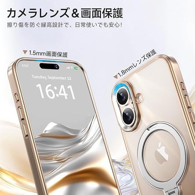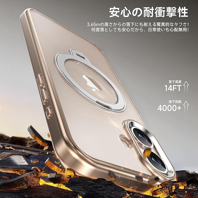 【最新!耐久性UP!360度回転スタンド】このiphone 16 用 ケースには、最新の360度回転スタンドが搭載されており、縦横の角度を0°〜170°で自由に調整できます。市販のスタンドが横置きに対応できないという欠点を完全に解消しました!動画視聴やビデオ通話時に、最適な角度を簡単に設定でき、横置きの不便さを解消します。さらに、強力なベアリングを採用し、リング部分の耐久性が大幅に向上しました。最大10倍の耐久性を実現し、長期間使用することができます。片手で操作でき、便利さと耐久性を兼ね備えた優れたアイテムです。