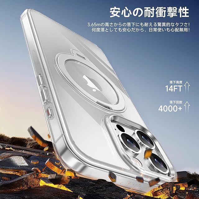 商品名:【透き通る上質感・多機能360°回転スタンド】KMAMBNG iPhone 16 Pro 用 ケース Magsafe対応【耐衝撃・金属感・真空メッキ・黄変防止・ストラップホール付き】縦横両立 角度自在 調整可能 磁吸機能でワイヤレス充電対応 おしゃれ スマホケース (クリア, iPhone 16 Pro)