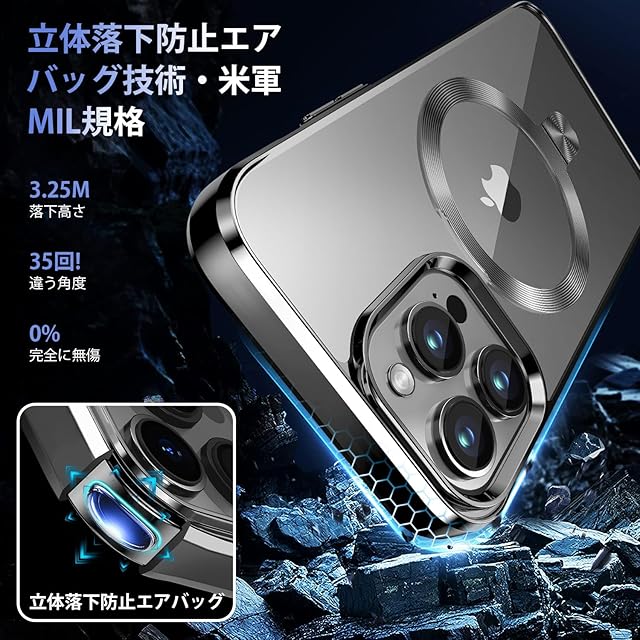 【iPhone専属色・本体を再現】このiPhone 16 Proケースは、スペースブラックのiPhone 16 Pro用に特別に設計されています。透明シェルの黄ばみのデメリットがなくなりました。側面にはドイツのバイエル社製TPU素材を使用、メッキと研磨プロセスの後、iPhoneのステンレススチールの外観を100%復元します。あと見た目的なことで言うと、電源ボタン・音量ボタンなど側面をぐるっとメッキでカバーされている統一感が個人的に魅力ですね。 このスマホケース- Pro ケースの背面は透明度高いポリカーボネート素材,新先端の「ナノバリア抗酸化技術」で表面に高分子遮断層を形成し、紫外線、皮脂などの侵入から徹底的に守れる。透明のバックパネルでAppleのロゴもはっきりと見えます、そして本体の美しさと高級感を最大限に生かすスタイリッシュなデザインです。