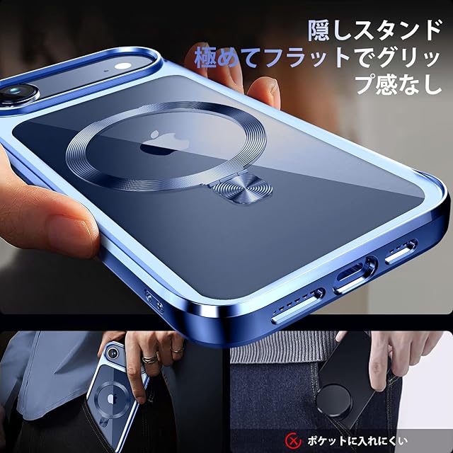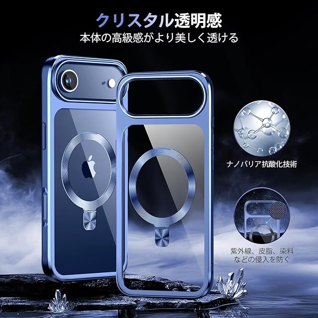 商品名:【CD MagSafeリング・スタンド一体】iPhone 17 Air 用クリアケース[MagSafe対応・隠しスタンド] [本体の色・メッキバンパー]ストラップホール付き 角度調整可 米軍MIL規格取得・耐衝撃 アイホン17 Air透明ケース スマホケース17エア人気6.6インチ(ブルー)