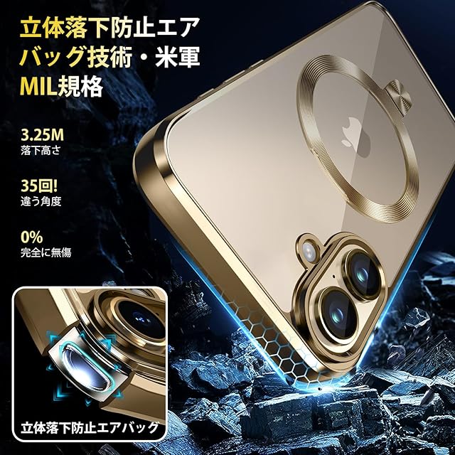 商品名:【CD MagSafeリング・スタンド一体】iPhone 17 用クリアケース[MagSafe対応・隠しスタンド] [本体の色・メッキバンパー]ストラップホール付き 角度調整可 米軍MIL規格取得・耐衝撃 アイホン17透明ケース スマホケース17 人気 6.3インチ(ゴールド)