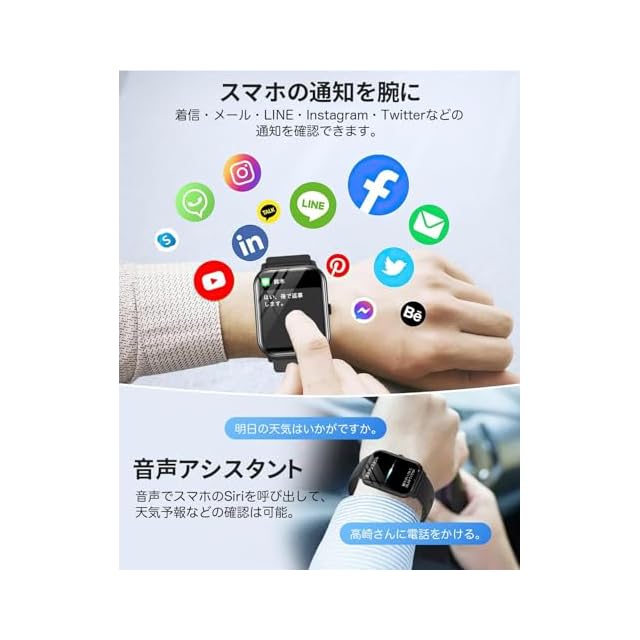 ⭐【Bluetooth5.3・通話可能・SOS緊急連絡】スマートウォッチ には高性能スピーカーとマイクが内蔵され、ペアリングするだけで通話することができます。運動中や仕事中にも携帯電話を出す必要がありません。最新世代のBluetooth5.3を採用して、Bluetooth4より通信範囲・接続の安定性が飛躍的に向上しました。音声アシスタントも付き、スマホのSiriを呼び出すことは可能。また、緊急事情がある時には、SOS機能より緊急連絡も実現できます。
