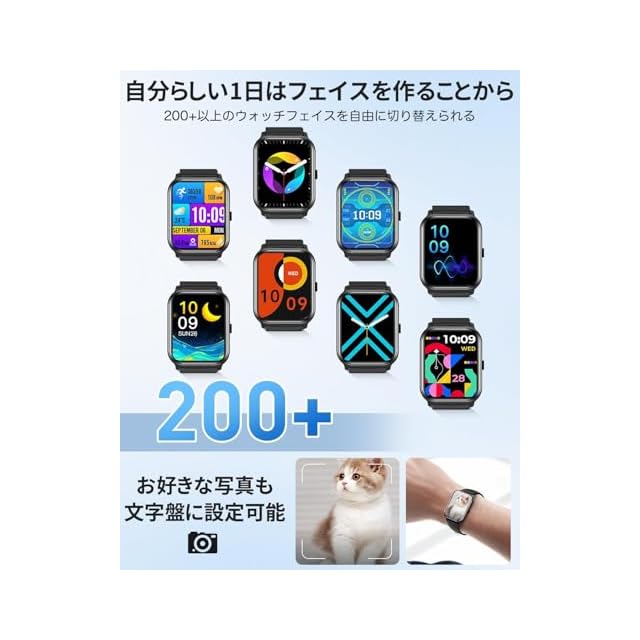 【豊富な機能搭載・200+種類文字盤編集可】目覚まし時計、懐中電灯、歩数計、遠隔カメラ、音楽再生、天気予報、ストップウォッチ、座りがち通知など便利な機能を備えて、日常生活をもっと手軽に。専用アプリで200+種類文字盤をダウンロードして文字盤を変更できます。さらに、お好きな写真も文字盤に設定可能です。