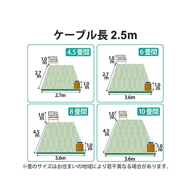 リビングでもゆったり接続できるケーブル長2.5mです。