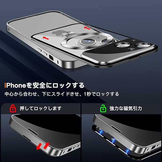 【スライドカバー磁気ロック・新次元の一体型カメラ保護】このiPhone 15 ケースは、革新的なデザインと優れた機能性を兼ね備え、スマホの保護において新しい次元を提供します、日常的な使用に最適です。スマホの上部には強力な磁気ロックが搭載されており、あなたのiPhone 15 をしっかりと固定し、落下や衝撃から守ります。これにより、スマホを使う際の安定感と安心感が大幅に向上します。また、このiphone15 ケースは、ロックと解除が簡単にでき、スマホの操作性を高めます。スライドと引き出しで1秒以内にロック/アンロックが可能。さらに、新次元の一体型カメラ保護は、このケースのもう一つの素晴らしい特徴です。カメラ部分を完全にカバーするこの一体式設計は、従来のカメラ保護に比べて、さらに進化した保護機能を提供します。従来のカメラ保護膜にありがちな隙間や不安定さを一切感じさせません。このアイフォン 15 ケースのレンズフィルムは、AR技術を採用し、さらに8k超透明液晶ディスプレイ技術を採用した。100%透過率で、色を忠実に再現