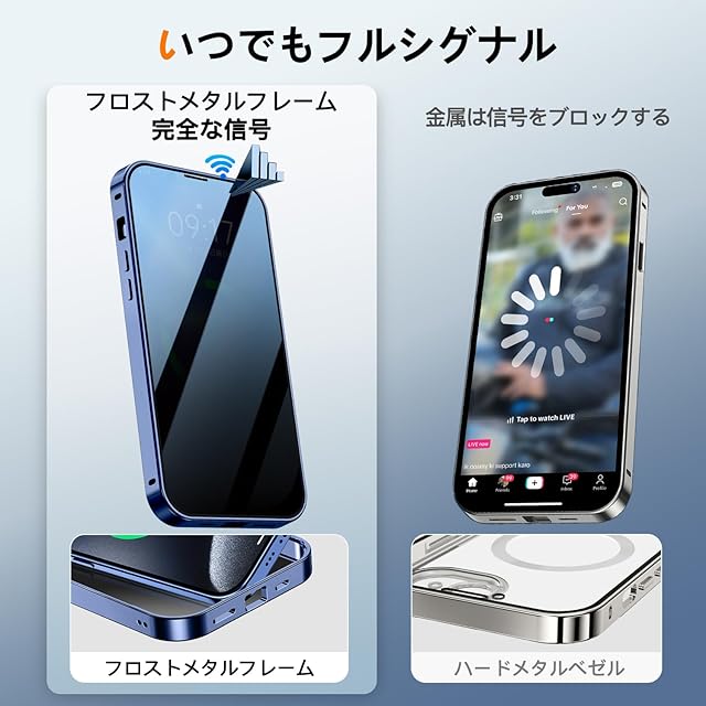商品名:【スライドカバー磁気ロック・覗き見防止・新次元の一体型カメラ保護 +CD隠しスタンド】MESTRIEV iPhone 15 用 ケース 全面保護 Magsafe対応 ランヤードホール付き [本体を再現・マット金属フレーム ] 縦横両対応 9H強化ガラス ワイヤレス充電対応 クリア 両面スマホケース 高感度タッチ いphone15 用 ケース 6.1インチ (ブルー)