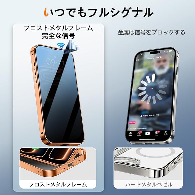 【360°全面保護・覗き見防止】このiPhone 17 Pro 用ケースは、前面・背面・側面すべてをしっかりと覆う360°全面保護構造を採用しています。日常的な使用にも耐える優れた耐衝撃性を備えており、あなたの大切なiPhone 17 Pro をしっかりと守ります。細部まで計算された保護力で、どんな使用シーンでも安心です。このアイフォン17プロケースの前面には高品質な覗き見防止フィルムを内蔵。正面からははっきり見える一方で、左右の視線からは画面が見えづらくなっており、通勤中やカフェなど人目が気になる場所でも安心して使用できます。プライバシーを重視する方に最適です。フロントカバーとバックパネルが一体化された構造で、装着時の厚みを最小限に抑えつつ、しっかりとした保護力を発揮