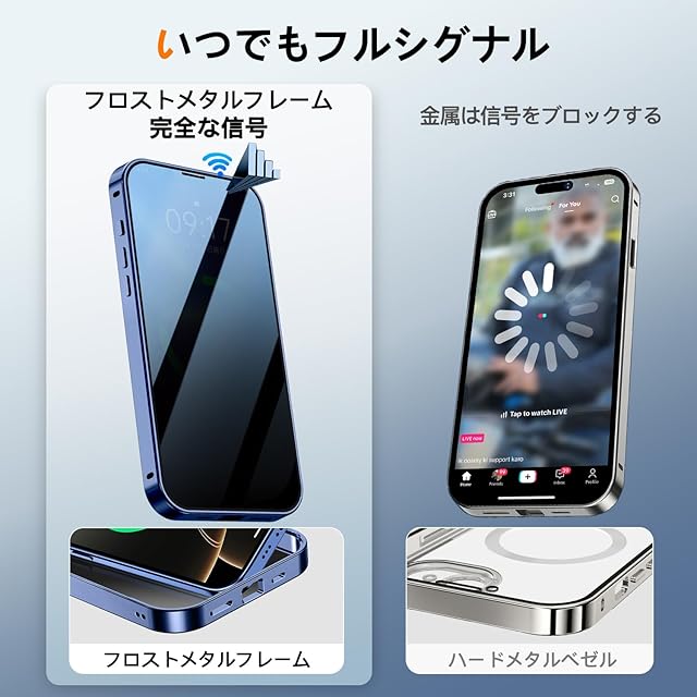 商品名:【スライドカバー磁気ロック・覗き見防止・新次元の一体型カメラ保護 +CD隠しスタンド】MESTRIEV iPhone 17 用 ケース 全面保護 Magsafe対応 ランヤードホール付き [本体を再現・マット金属フレーム ] 縦横両対応 9H強化ガラス ワイヤレス充電対応 クリア 両面スマホケース 高感度タッチ いphone17 用 ケース 6.3イン (ブルー)