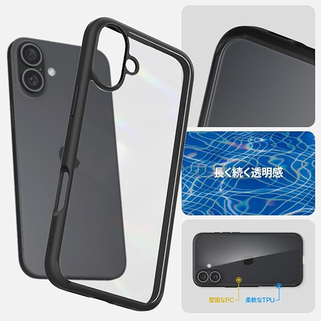 商品名:Spigen iPhone 16 Plus ケース クリア MagSafe対応 耐衝撃 ストラップホール 黄変防止 バンパー 米軍MIL規格 ウルトラ・ハイブリッド ACS08072 (マット・ブラック)