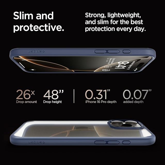 商品名:Spigen iPhone 16 Pro ケース クリア ストラップホール 米軍MIL規格 バンパー 耐衝撃 ウルトラ・ハイブリッド ACS08126 (ネイビー・ブルー)