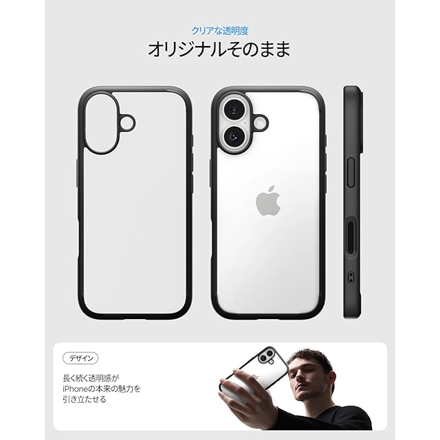 【高耐久のクリア素材】装脱着が簡単になる柔らかいTPU(熱可塑性ポリウレタン)に丈夫なPC(ポリカーボネート)をハイブリッドさせた2重構造でデバイスを守ります。背面のPCにはUVコーティング、側面には黒色のTPUを適用し、黄変を最小限に抑制しました。