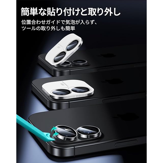 【プロ仕様の装着キット付き!誰でも簡単装着】Apple iPhone 17/16/16 Plus カメラ保護膜には、専用取り付けフレームとクリーニングキットが付属!難しい位置合わせは一切不要で、初心者でも数秒でピタッと正確に装着可能。また、専用リムーバー付きで、剥がす時も簡単安心。ストレスのない優れたユーザー体験を提供します
