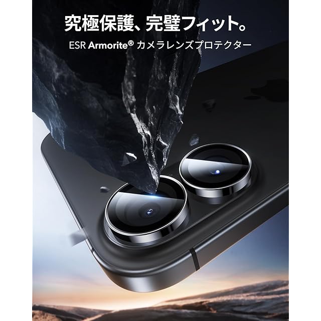 商品名:【薄型強化・50kg耐衝撃】ESR カメラフィルム iPhone 17/iPhone16/iPhone16Plus 用 カメラ保護 米軍MIL規格 強化ガラス 9H硬度 レンズカバー 割れにくさが80%向上 AR加工 高い透過率 タフなHD個別プロテクター Armoriteシリーズ いphone17/16/16plusカメラ保護カバー(1パック ブラック)