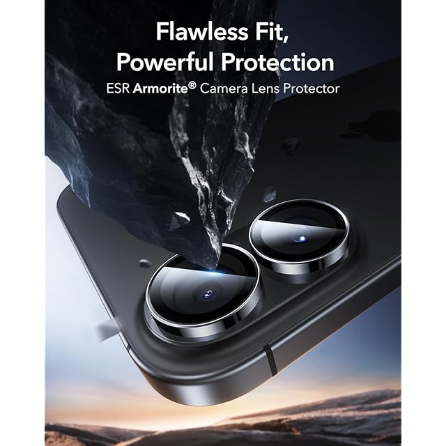 【薄型強化・50kg耐衝撃】ESR カメラフィルム iPhone 17/16/16Plus 用 カメラ保護 米軍MIL規格 強化ガラス 9H硬度 レンズカバー 割れにくさが80%向上 AR撥加工 高い透過率 タフなHD個別プロテクター Armoriteシリーズ いphone17/16/16plusカメラ保護カバー(2パック ブラック)