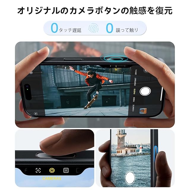 【ボタン進化、超精密なタッチ!】2024年iPhone 16 Pro Max(用)の多機能撮影ボタンが革新されました。それに合わせて、JUESHITUO iPhone 16 Pro Max用の ケースも新たに高精度なカメラコントロールカバーが追加!ケースを付けたままスムーズに操作可能、新しい撮影体験を最大限に楽しめます。各ボタンはアイホン16 Pro Maxをモデルに、細部までこだわり、フィット感を重視し、精密に設計された。上下に隙間を設ける独自の設計は、ボタンの反応がよく、程よい押し心地を実現。対応機種:iPhone 16 Pro Max用の ケース