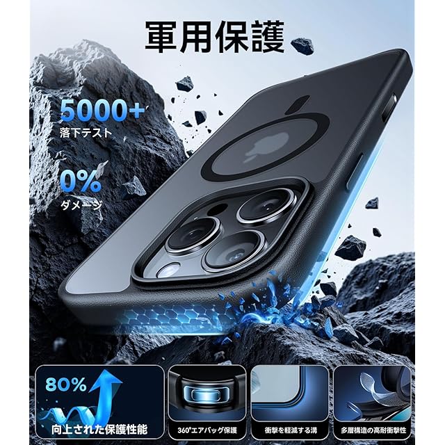 【MIL 規格対応&安心な落下保護!】4コーナー エアアーマーと4層TPUソフトバンパーがシームレスに統合されており、衝撃分散を最大限に高めます。新しいハニカム構造の耐衝撃バックパネルは、防爆および耐傷機能を提供できるiphone16pro 用の ケース。これら 3 つのコンポーネントが保護システムを形成し、360 度の衝撃吸収システムを構築します。 5,000 回、16 フィートの落下テストに損傷なく耐えます。